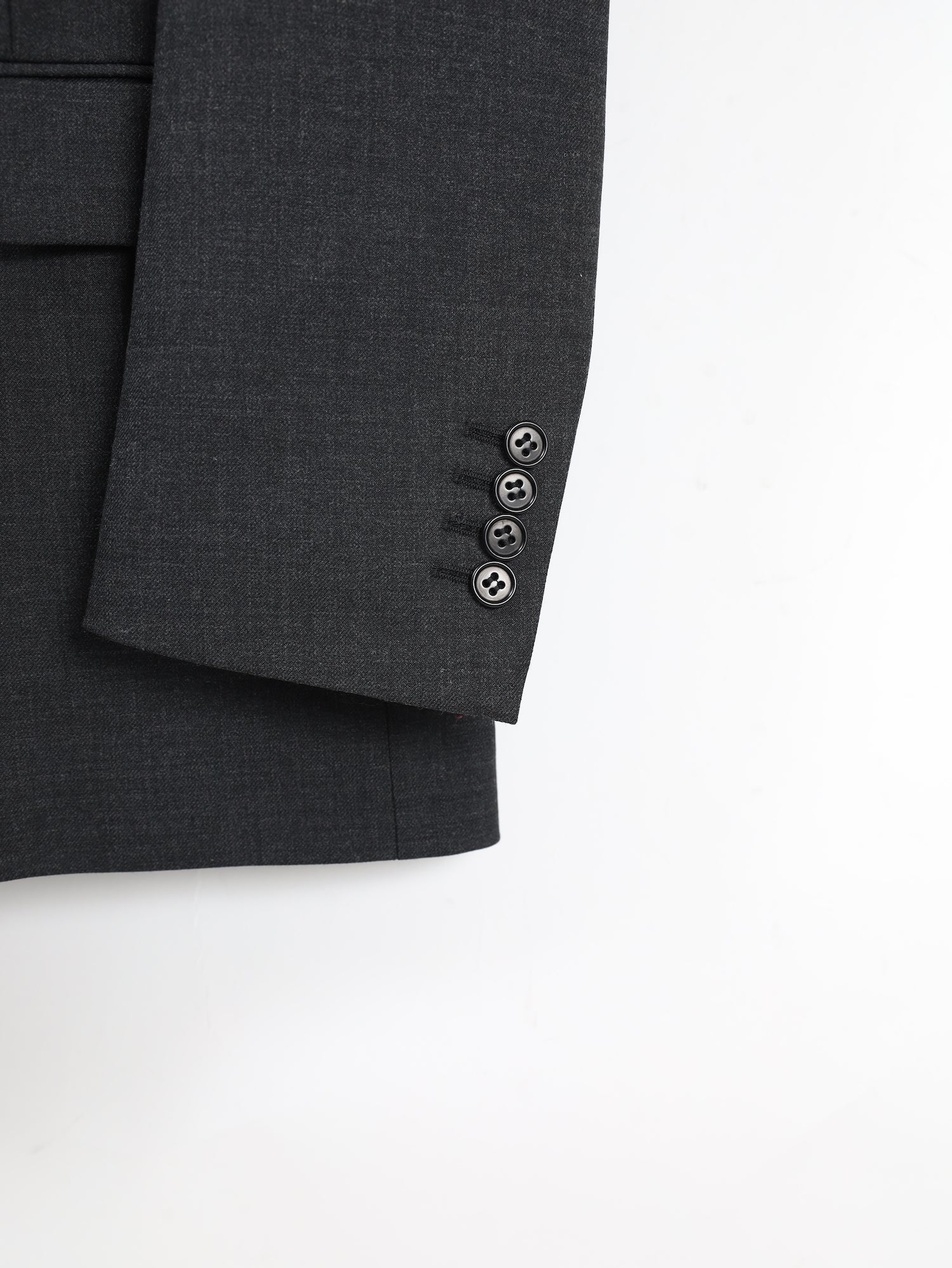 気品のあるピークドラペル仕様、ホーンボタンを使用することでより上品な1着に仕上げております。