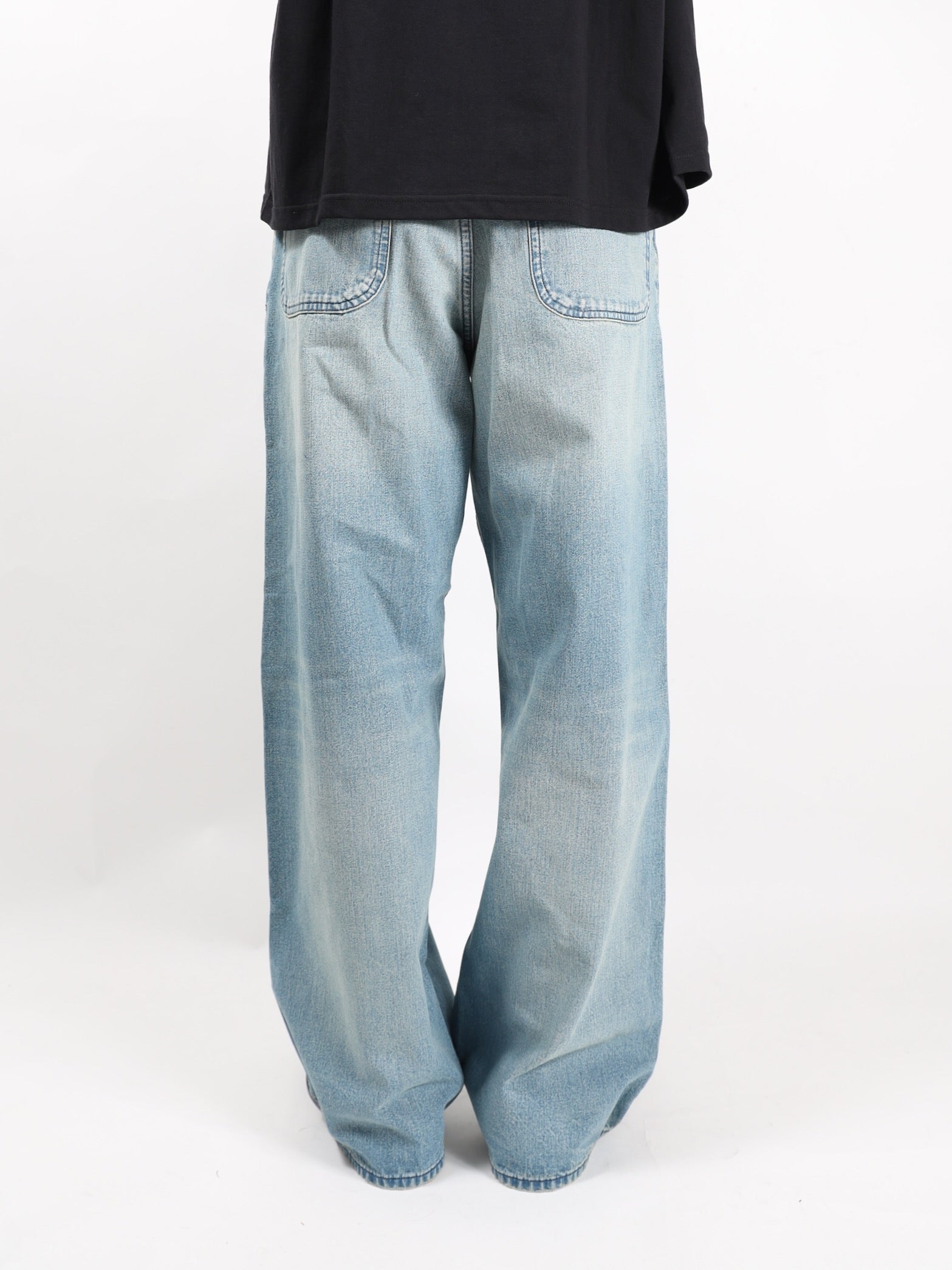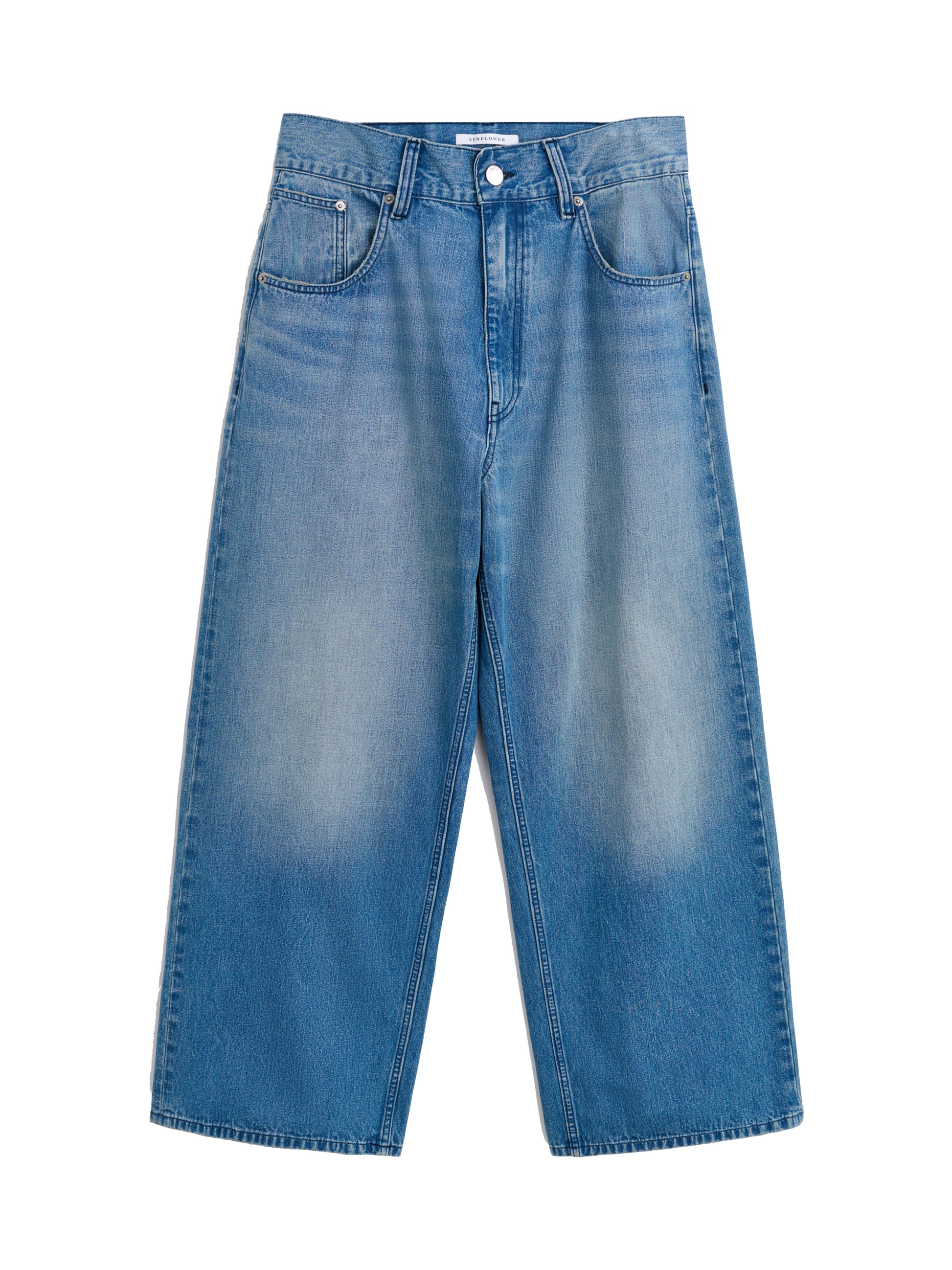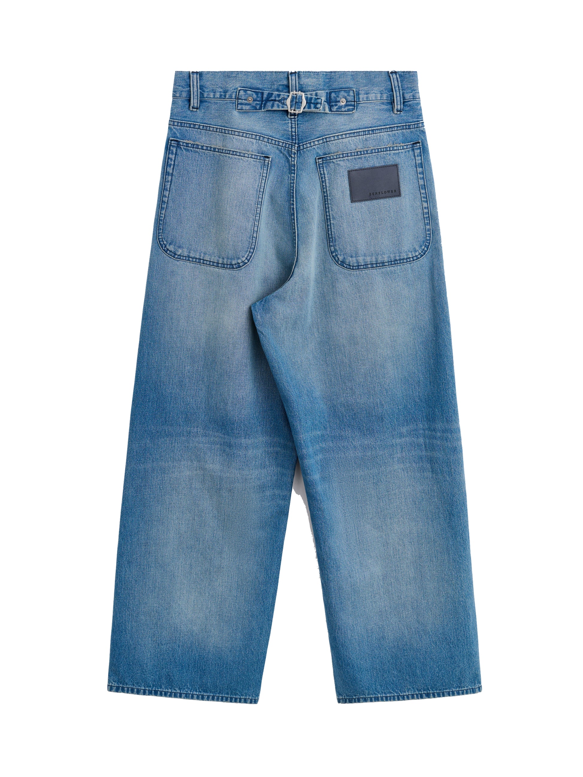 クラシックなシンチバックディテールのワイドデニムパンツ。
