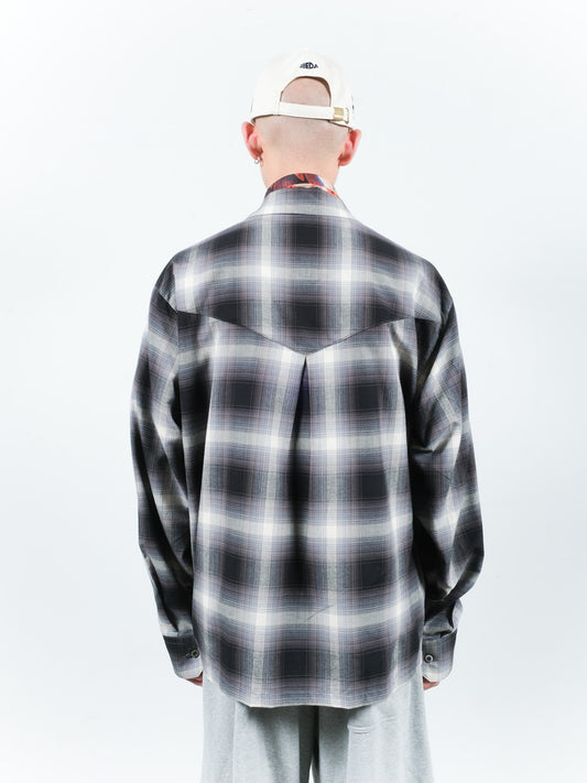 JIEDA CHECK OPEN COLLAR SHIRT